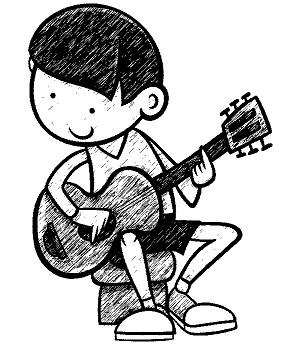 Pentti laulattaa ja säestää kitaralla.
